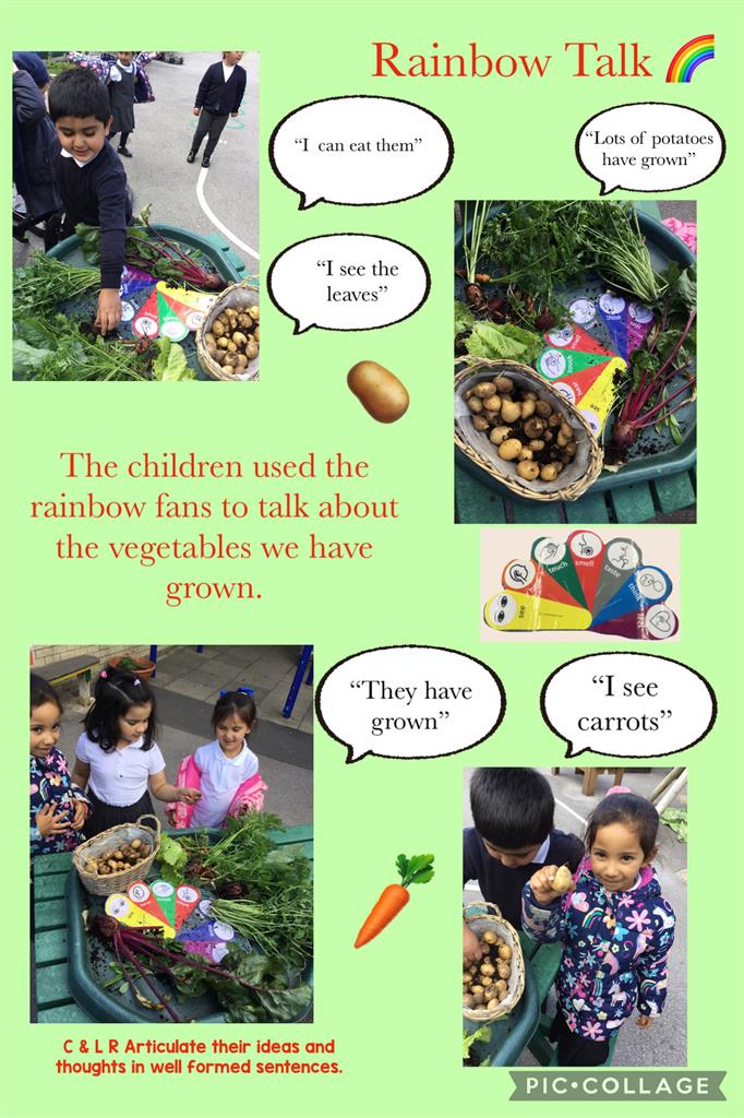 The children in FS2 had a blast using their rainbow fans to chat about all the amazing vegetables they've grown at school. 🌟πŸ₯¦ It’s wonderful to see their excitement for gardening and healthy eating! Keep up the great work, little green thumbs! 🌱✨