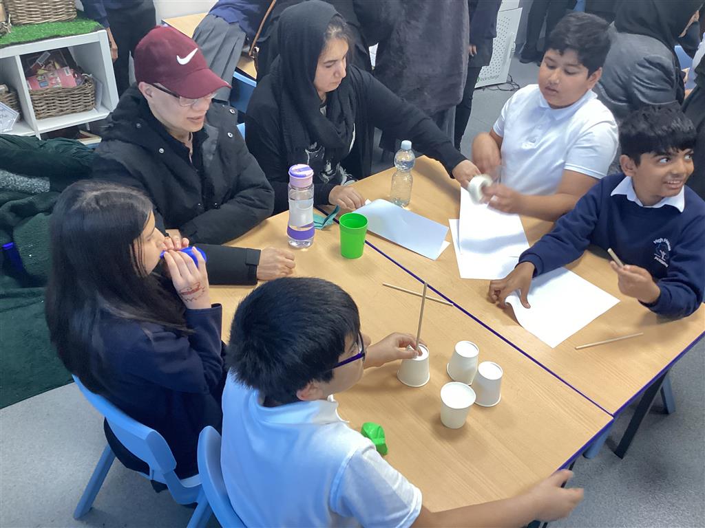 Teams had to build the tallest, freestanding structure with 4cups, 5straws, 2balloons, 4sheets of paper and some tape. Parents and pupils worked together in the time limit. We saw great cooperation, communication, teamwork, resilience, determination and, most importantly, fun! Thank You for all that attended.