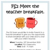 The FS2 team would like to invite Parents to a MEET THE TEACHERS BREAKFAST to give you the opportunity to share breakfast with your child and to chat with your child’s teachers.