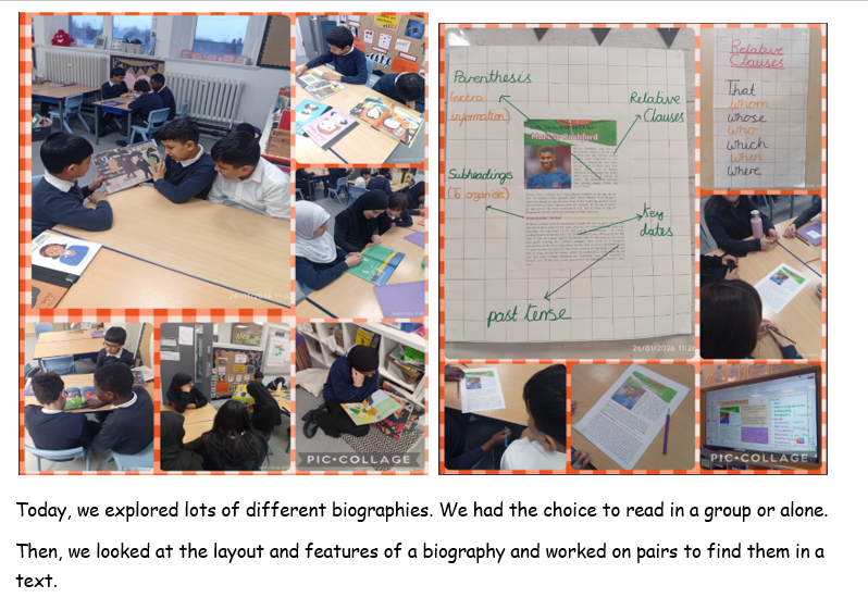 Year 6 have started their new writing unit this morning. Taking the 'Little People, Big Dreams' books as our focus, we explored the features and structures of different biographies. Students also had the opportunity to read from a selection of these books before they begin drafting their own biography.