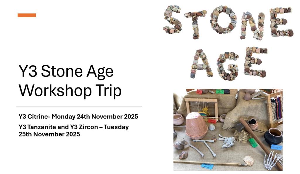 As part of our history topic this year, Year 3 will be studying Prehistoric Britain. To support and enrich the children’s understanding of this fascinating period, we are pleased to inform you that we have arranged an exciting educational trip to take part in a Stone Age Workshop at The Green Estate, Sheffield.