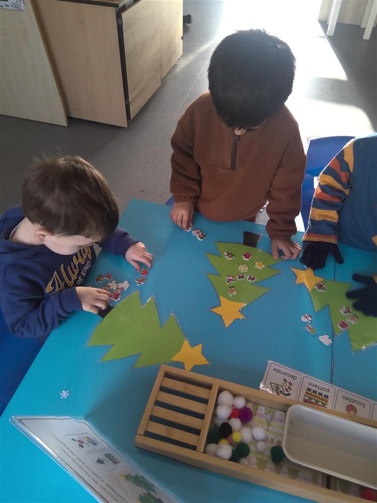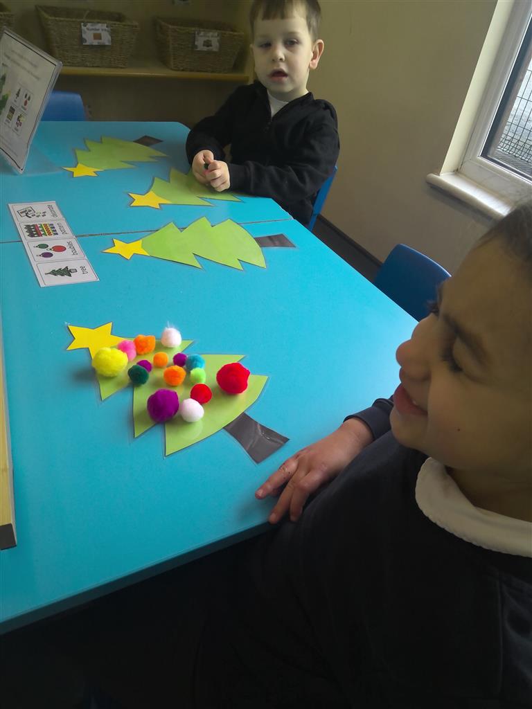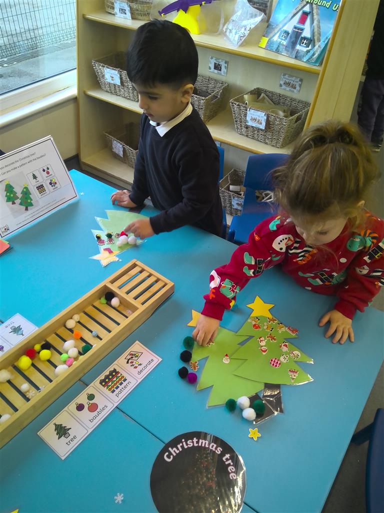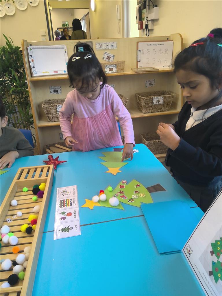The children enjoyed creating patterns using colourful baubles on our laminated Christmas trees today. This festive activity helped support early maths skills such as recognising patterns, sequencing, and problem-solving — all while having lots of fun!