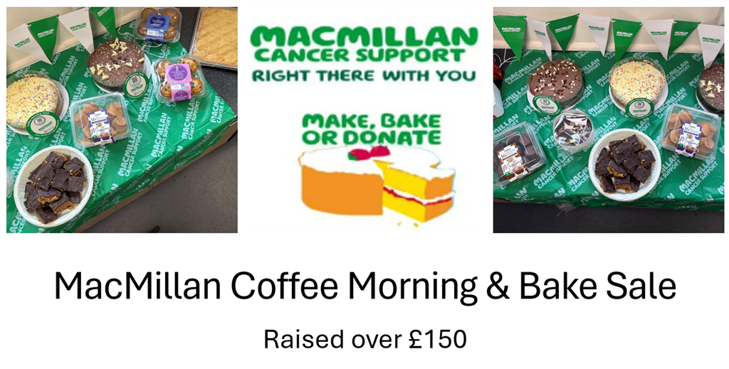 We raised over £150 for MacMillan Cancer Support! A huge THANK YOU to all the families who bought and donated delicious bakes!