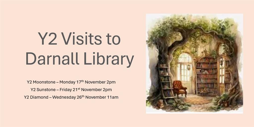 Y2 families! Our children are off to Darnall Library for some book exploration and storytime!