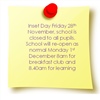 We'll be back in action on **Monday, 1st December** bright and early at **8am** for breakfast club and **8:40am** for learning 😊