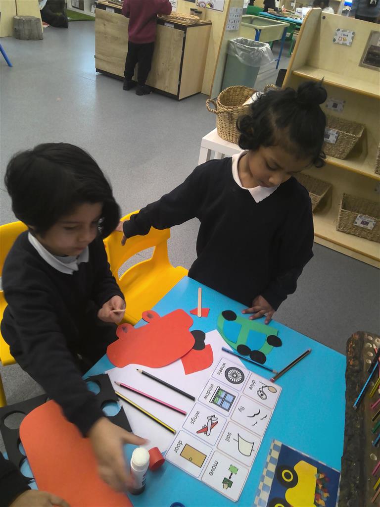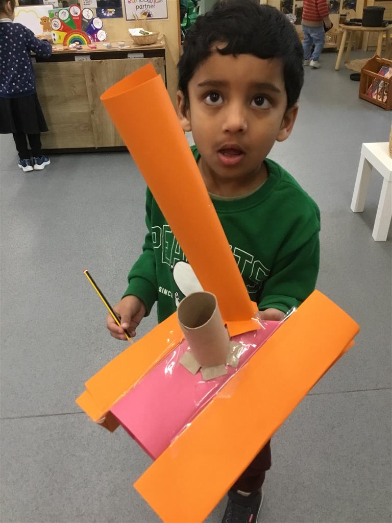 This week the nursery children got busy creating their very own vehicles inspired by our story “We All Go Travelling By”. Using a variety of craft materials, they designed cars, trains, planes and more – each one unique and full of imagination.