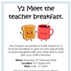 The Y2 team would like to invite Parents to a MEET THE TEACHERS BREAKFAST to give you the opportunity to share breakfast with your child and to chat with your child’s teachers.